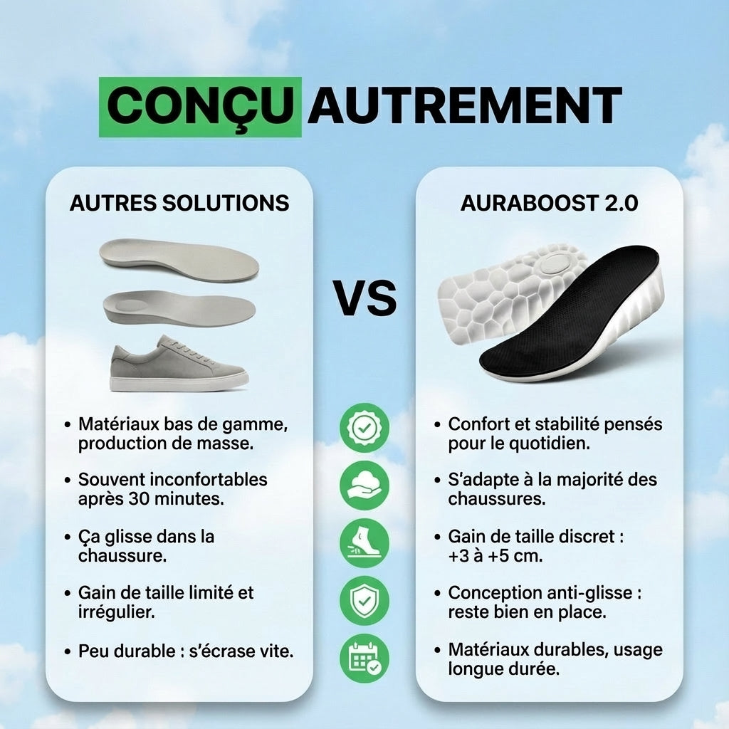 J'en ai acheté trois paires, mais je n'ai pu en garder qu'une seule, car mes amis ont réclamé les autres. Elles sont très confortables et la hauteur supplémentaire qu'elles procurent semble presque illégale.